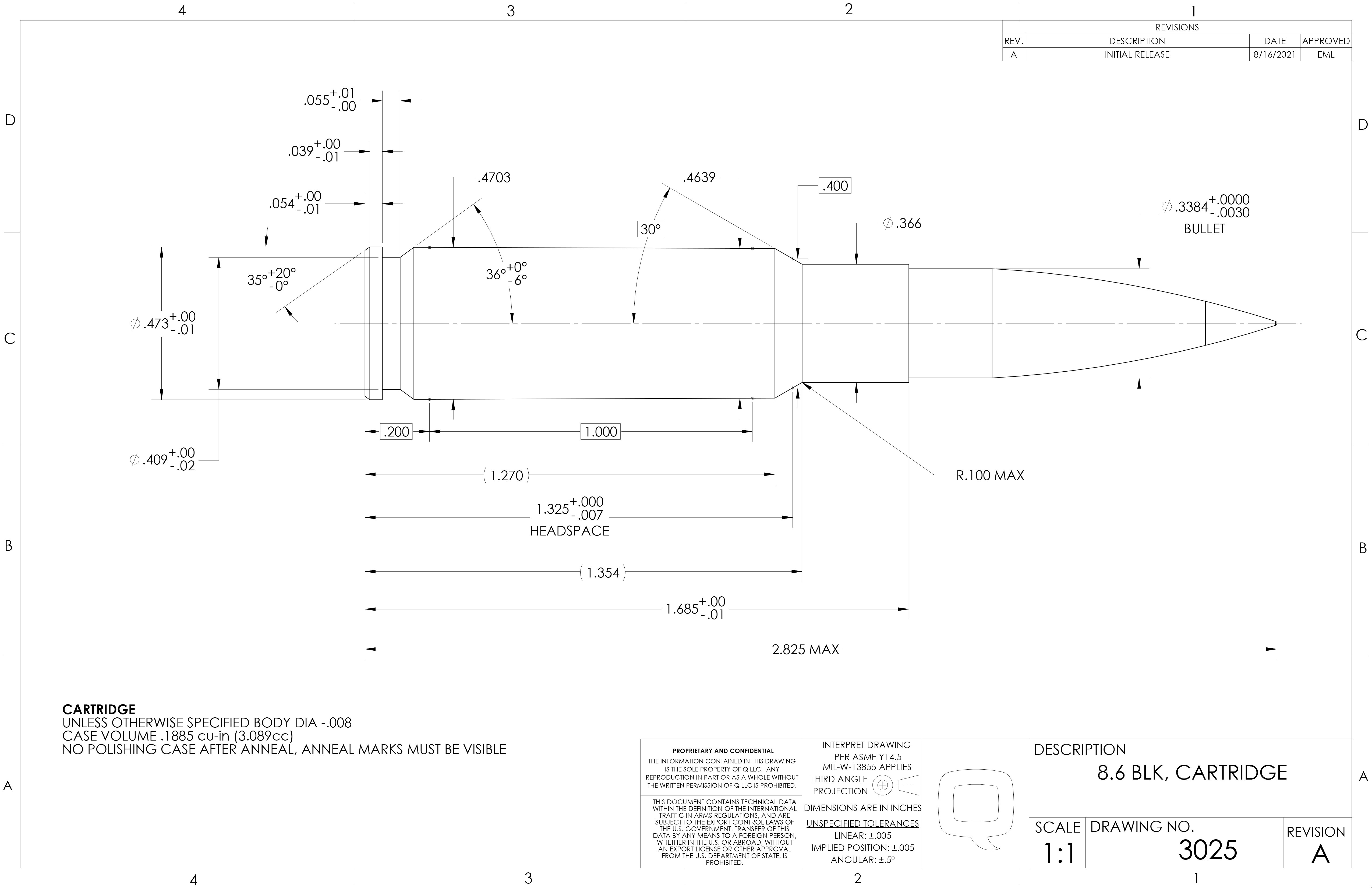 We have noticed inconsistencies with 8.6 BLK ammunition available on the market. Ammunition that does not match cartridge print below cannot be guaranteed to function in our rifles or barrels.