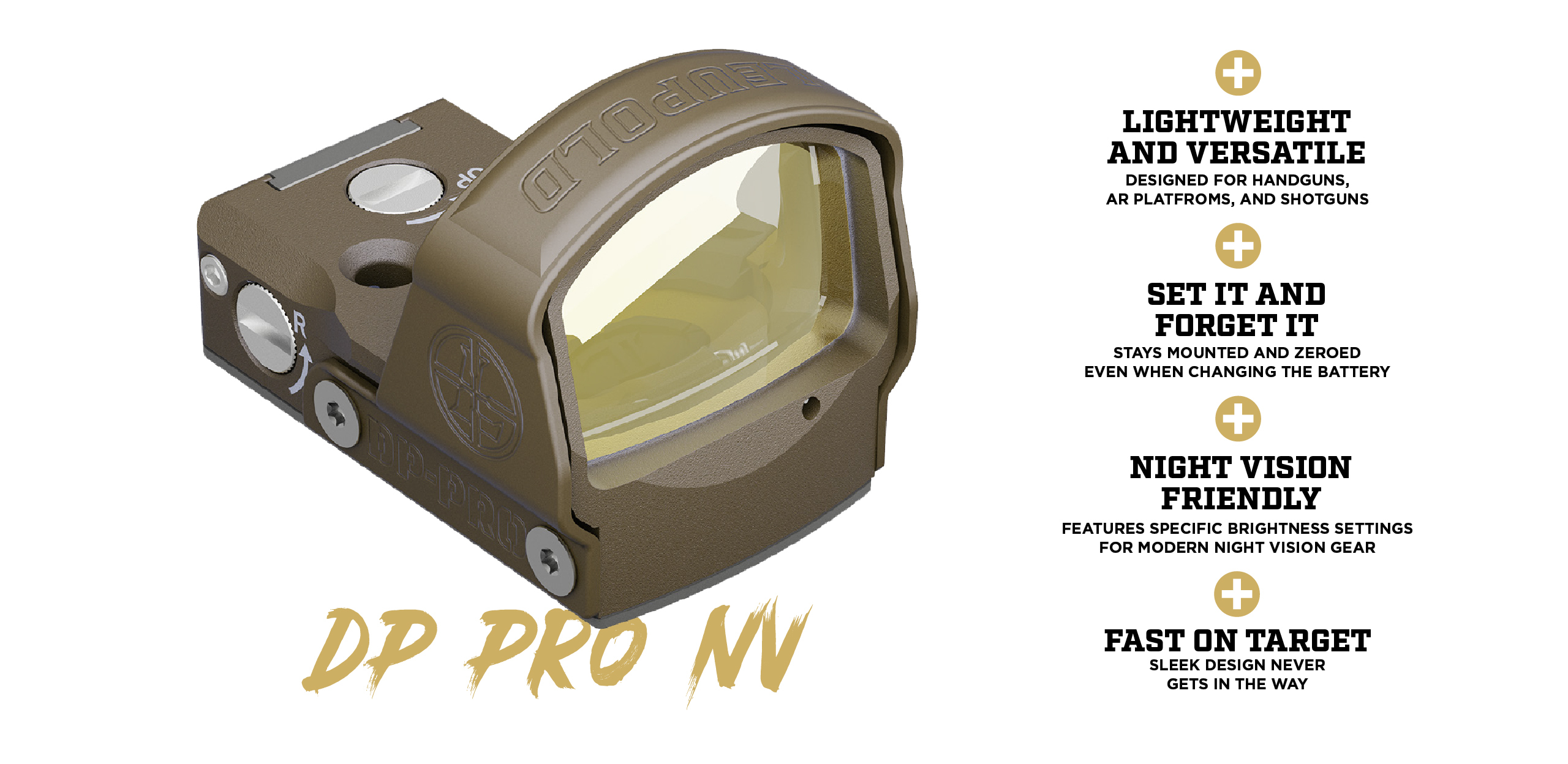 The DeltaPoint® Pro NV (Night Vision) is proof that you don't have to compromise performance on a small sight. And now, it supports modern night vision devices with 10 brightness settings, including two that fine tune the red dot to match the sensitivity of your night vision equipment. We also added a customizable brightness setting at the top end the DP Pro NV. This makes it easier to quickly max out the intensity of your dot when conditions are at their brightest. So if you’re moving between an indoor environment and bright sunlight, you won’t miss a beat.