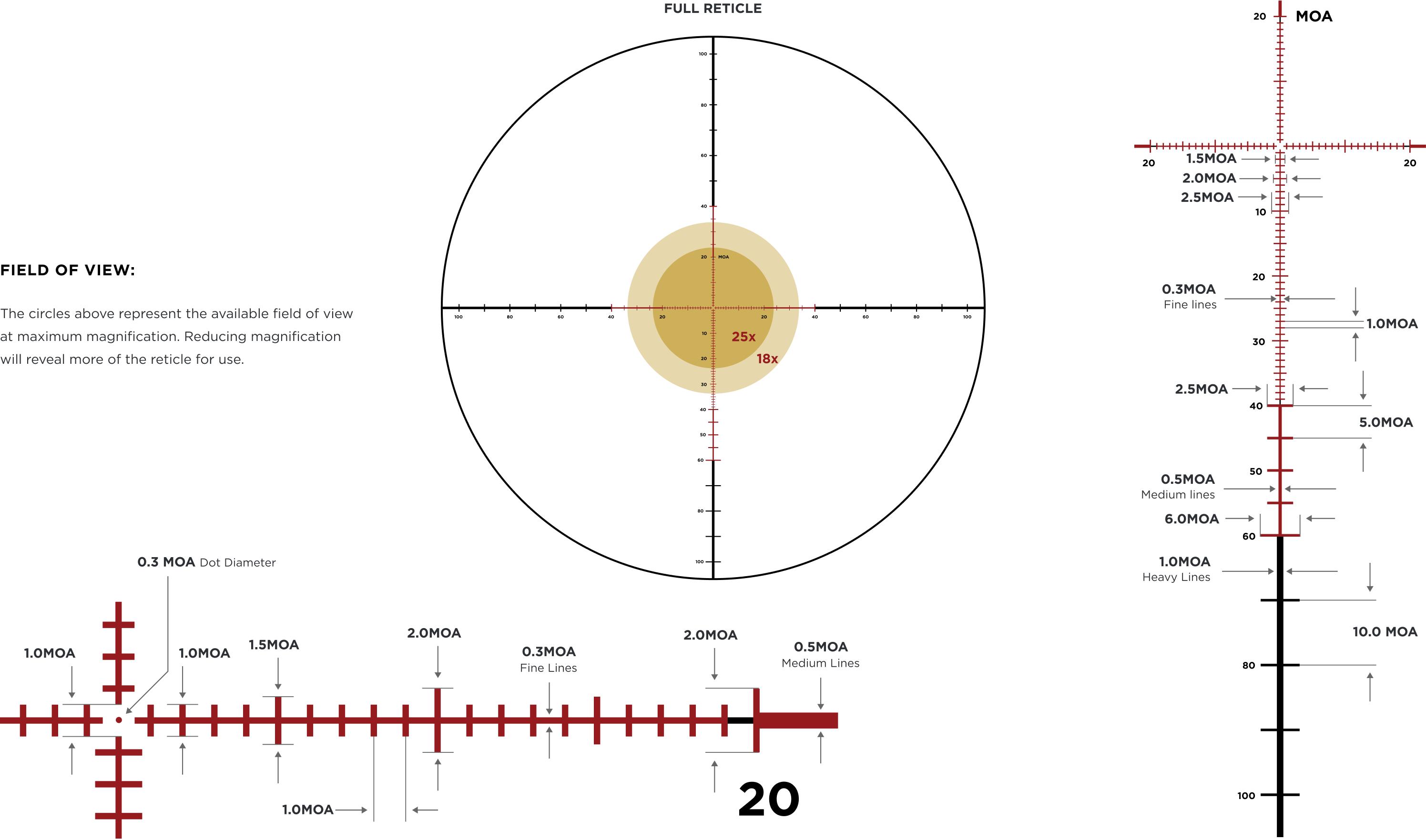 These low-profile dials are available on select models and provide up to 71.5MOA of adjustment in 3 revolutions and 1/4 MOA clicks. Visual and tactile revolution indicators ensure you don’t get lost in the travel. The ZeroLock® feature prevents inadvertent adjustments and ensures accurate return to zero. - Electronic Reticle Level