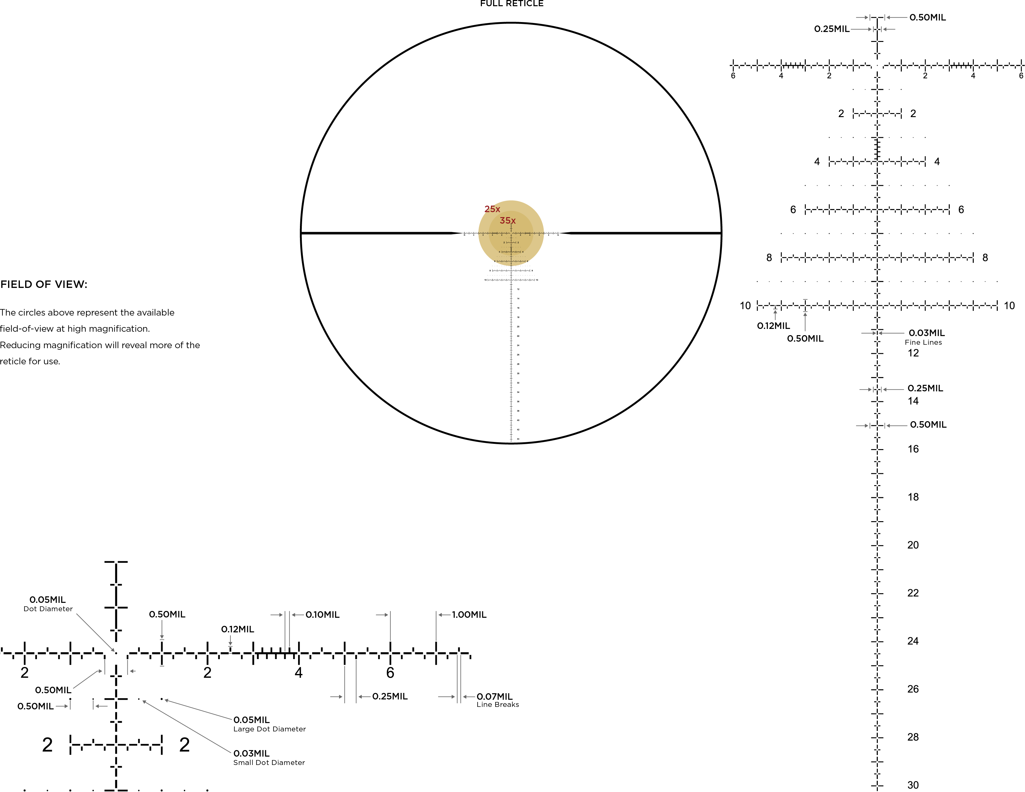 These low-profile dials are available on select models and provide up to 30-MILs of adjustment in 3 revolutions and 0.1 MIL clicks. Visual and tactile revolution indicators ensure you don’t get lost in the travel. The ZeroLock® feature prevents inadvertent adjustments and ensures accurate return to zero. - Side Focus
