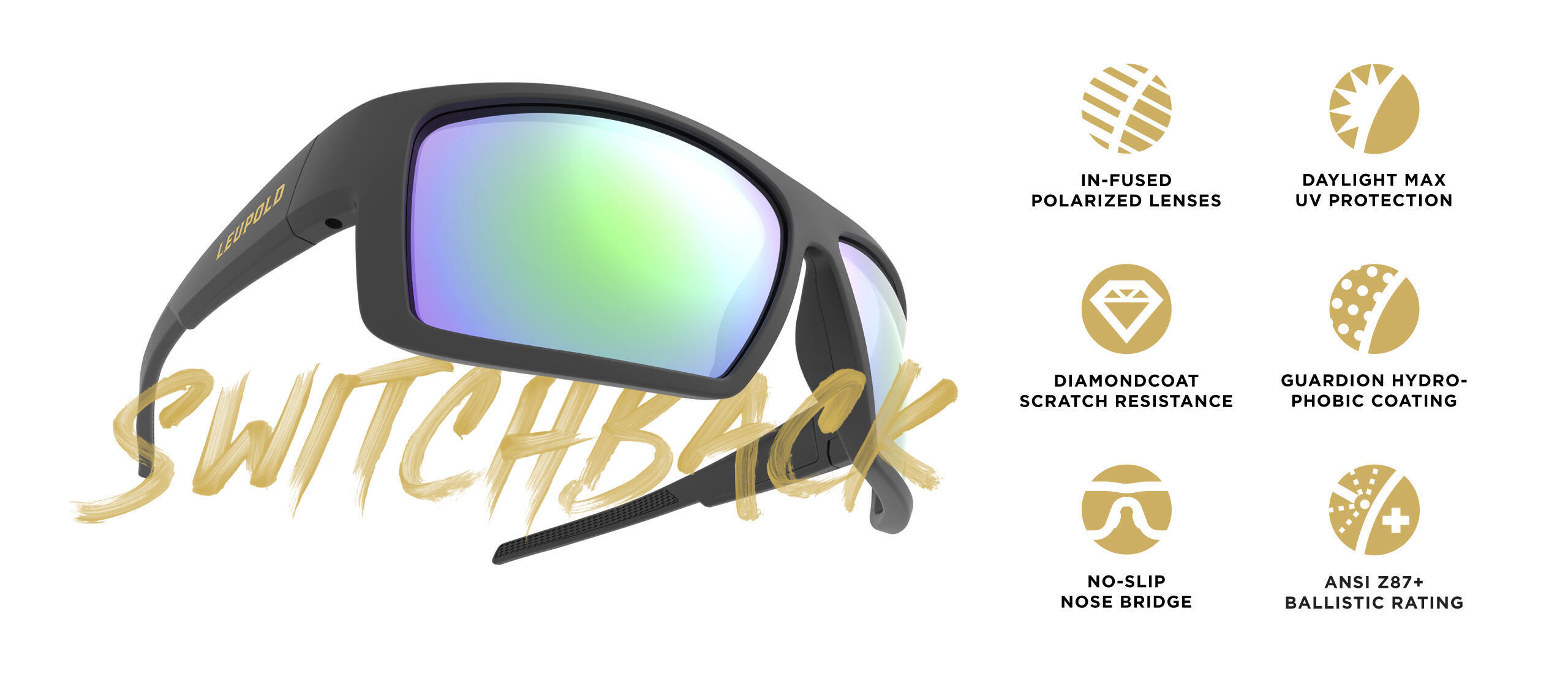 Leupold Switchback Glasses: Matte Black, Emerald Mirror