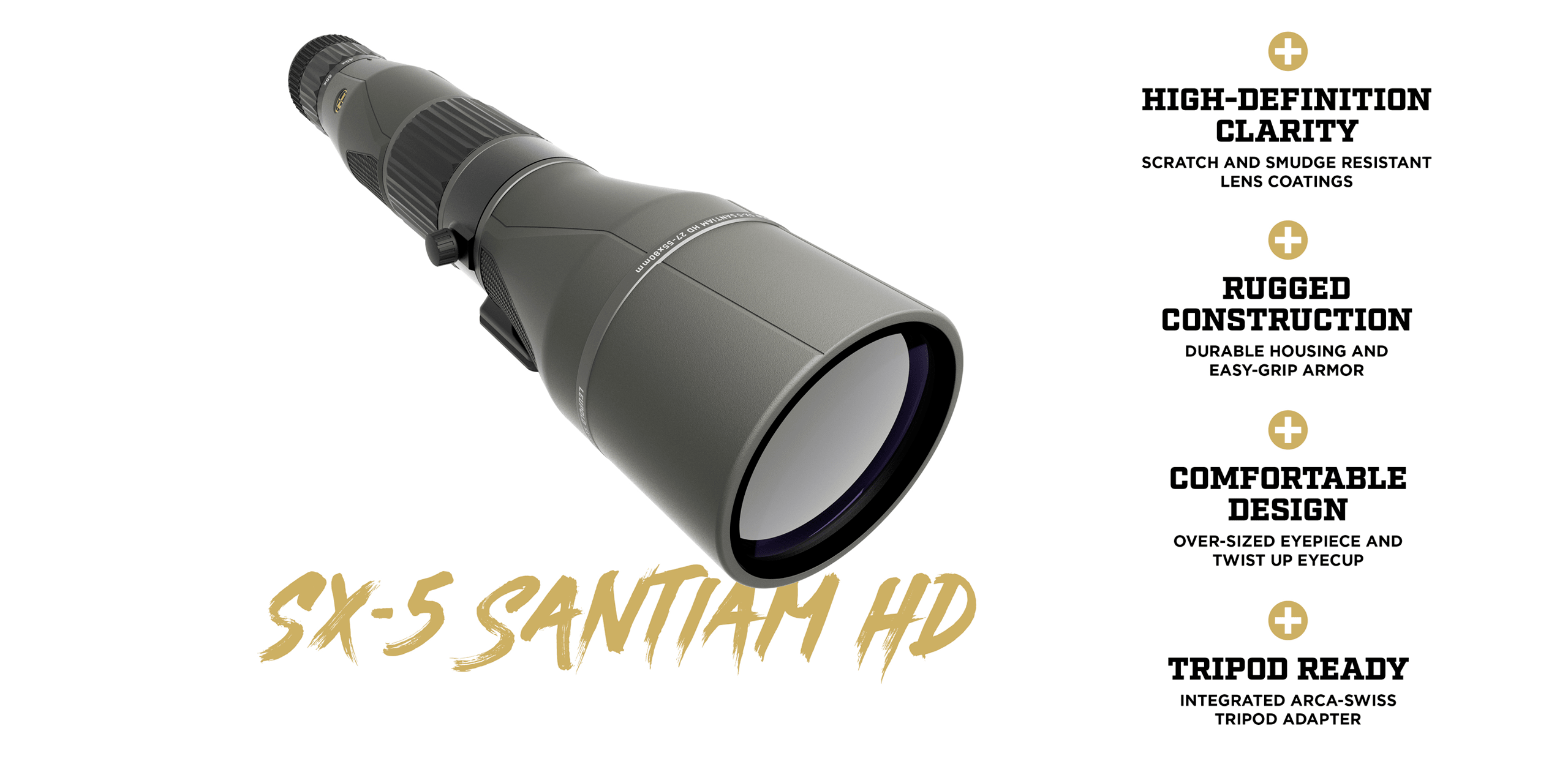 The SX-5 Santiam HD is designed and assembled in the USA. And like all Leupold spotting scopes, it’s fogproof, waterproof, and guaranteed to perform for life.