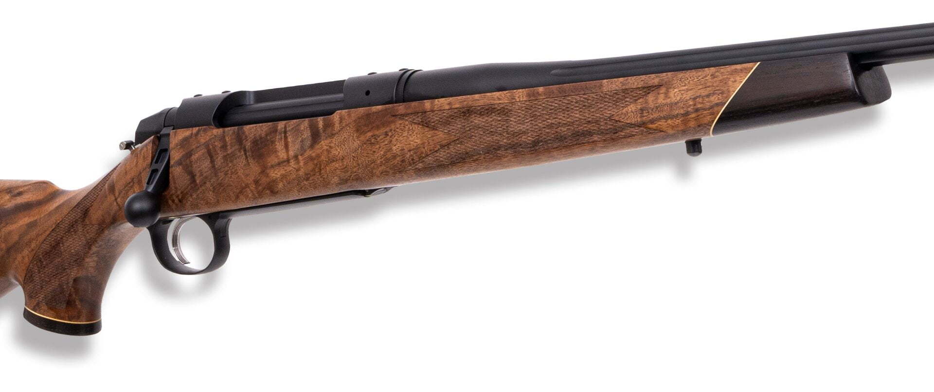 Featuring a signature fancy walnut stock with rosewood forend and grip cap with maple diamond inlay and spacers. - Cerakote®